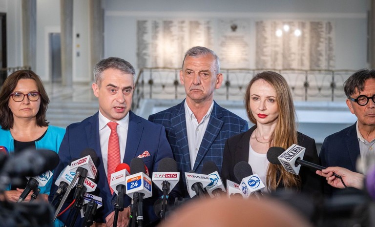 Droga, kochana opozycjo! Platformo Obywatelska, Szymonie Hołownia, Władysławie Kosiniaku-Kamyszu! Stoimy tu jako ekipa. Polska Partia Socjalistyczna, Unia Pracy, partia Razem, Nowa Lewica, klub parlamentarny. Chcemy Wam powiedzieć, ż...